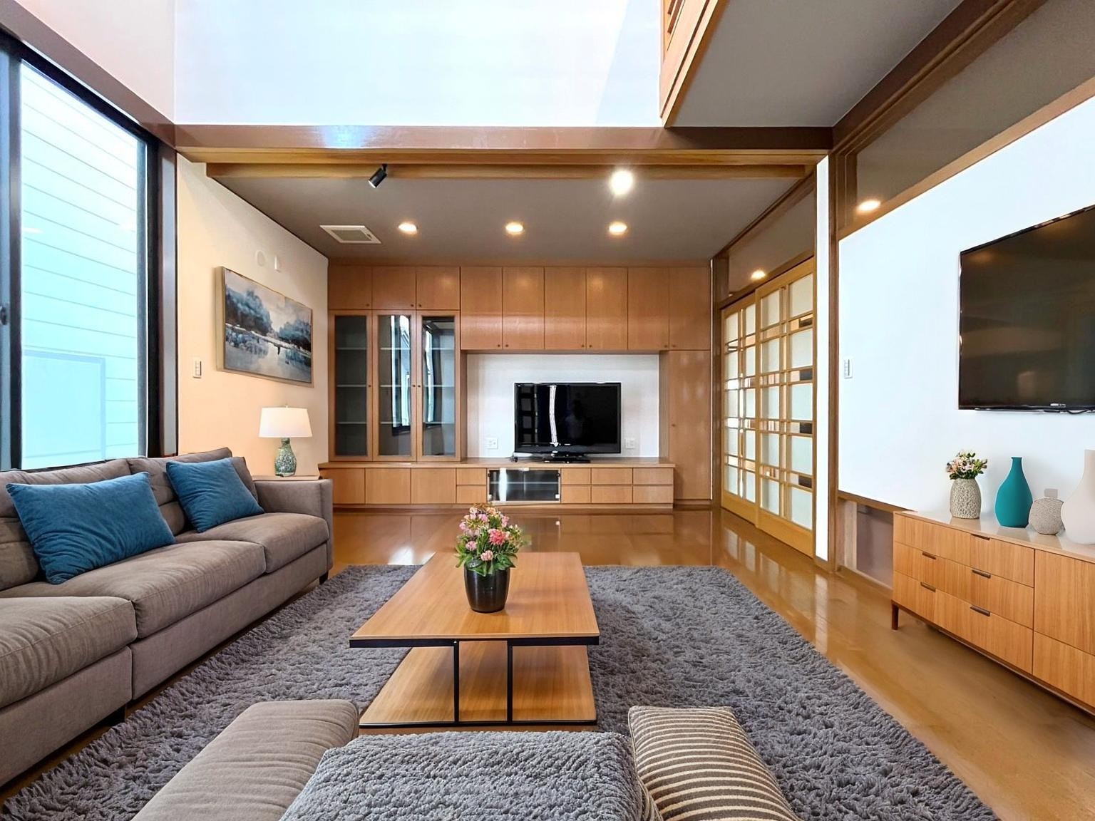 リビングには開放的な吹き抜けがあり、どこにいても家族の気配を感じられる、あたたかみのある空間に。
