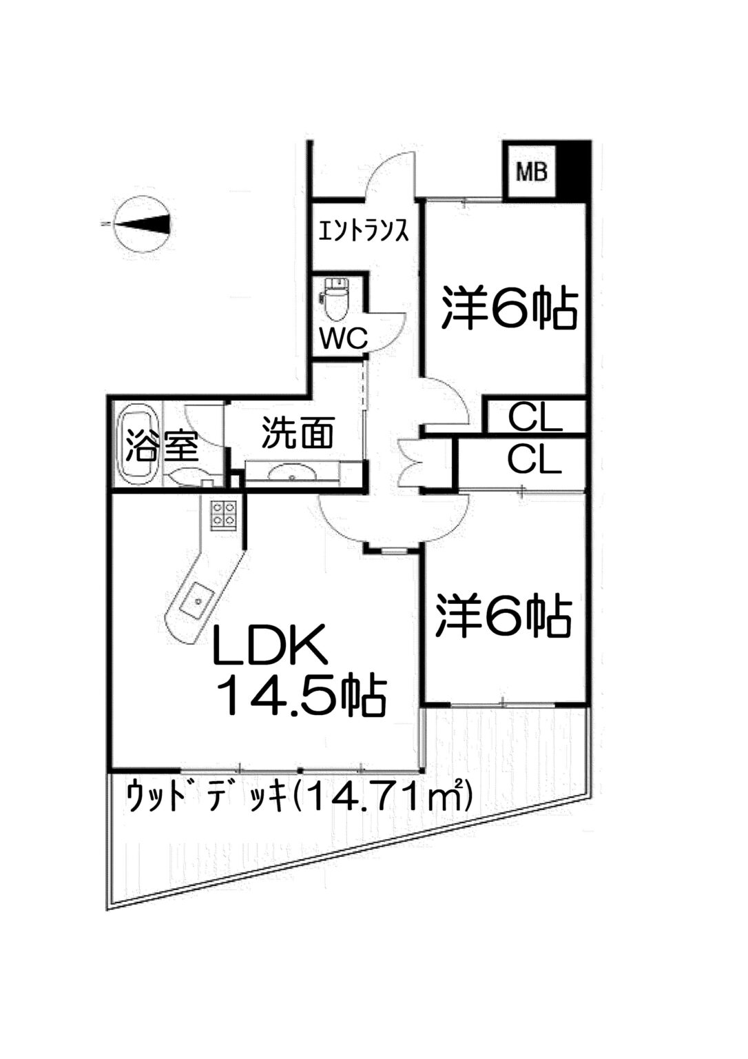 LDK(14.50畳), 洋室(6.00畳), 洋室(6.00畳)