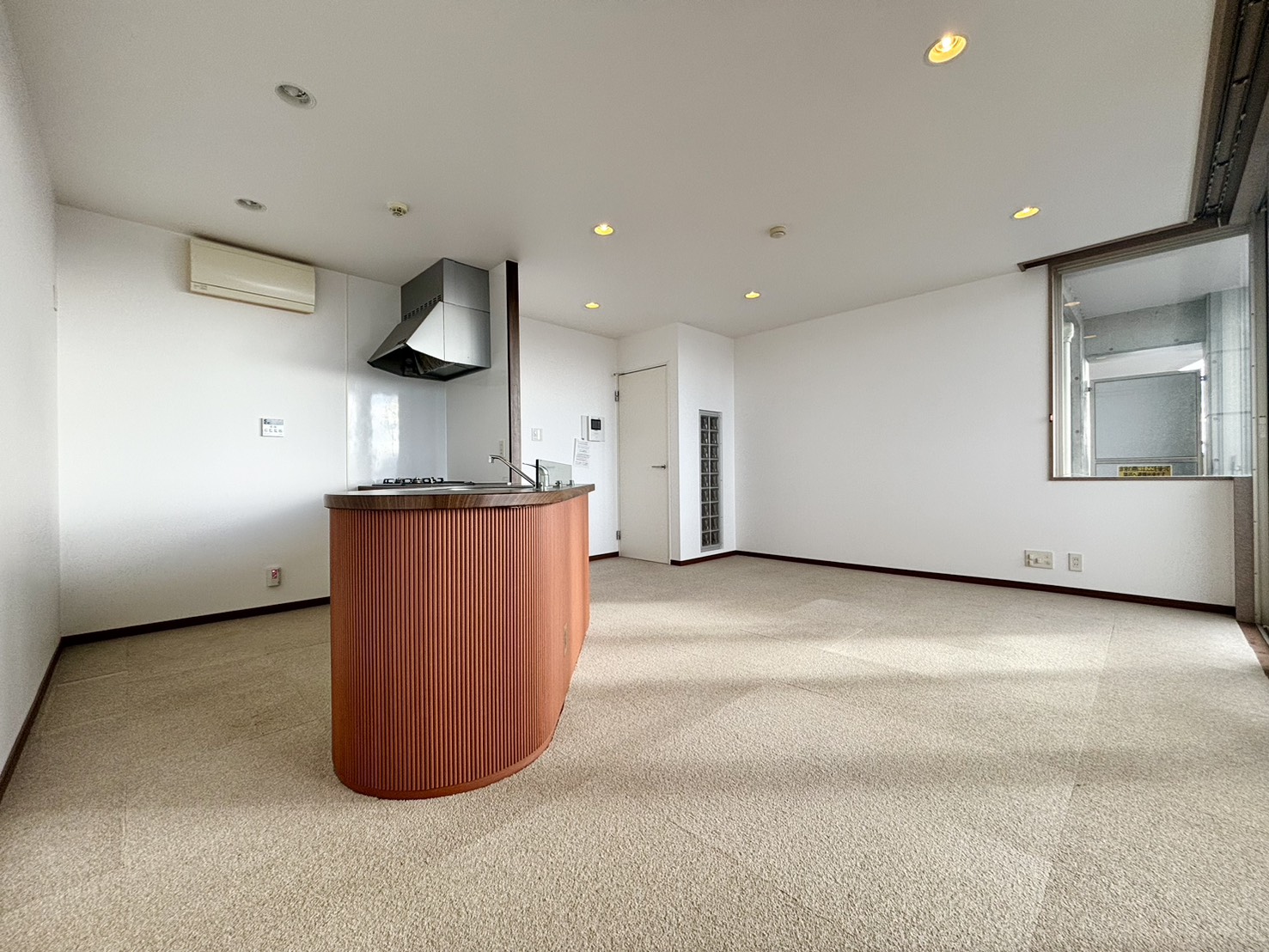 そのバルコニーに向かって配置された大きな対面キッチンは、家族の様子を見守りながら快適にお料理ができる理想的な空間です。さらに、”全室エアコン付き”という希少な条件も大きな魅力。初期コストをグッと抑えられるのも嬉しいポイントです。